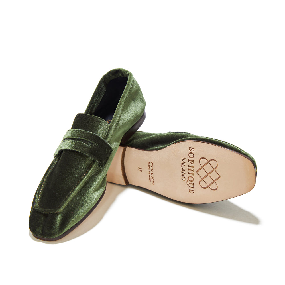 - Sophique loafers handcrafted from soft wool velvet and suede