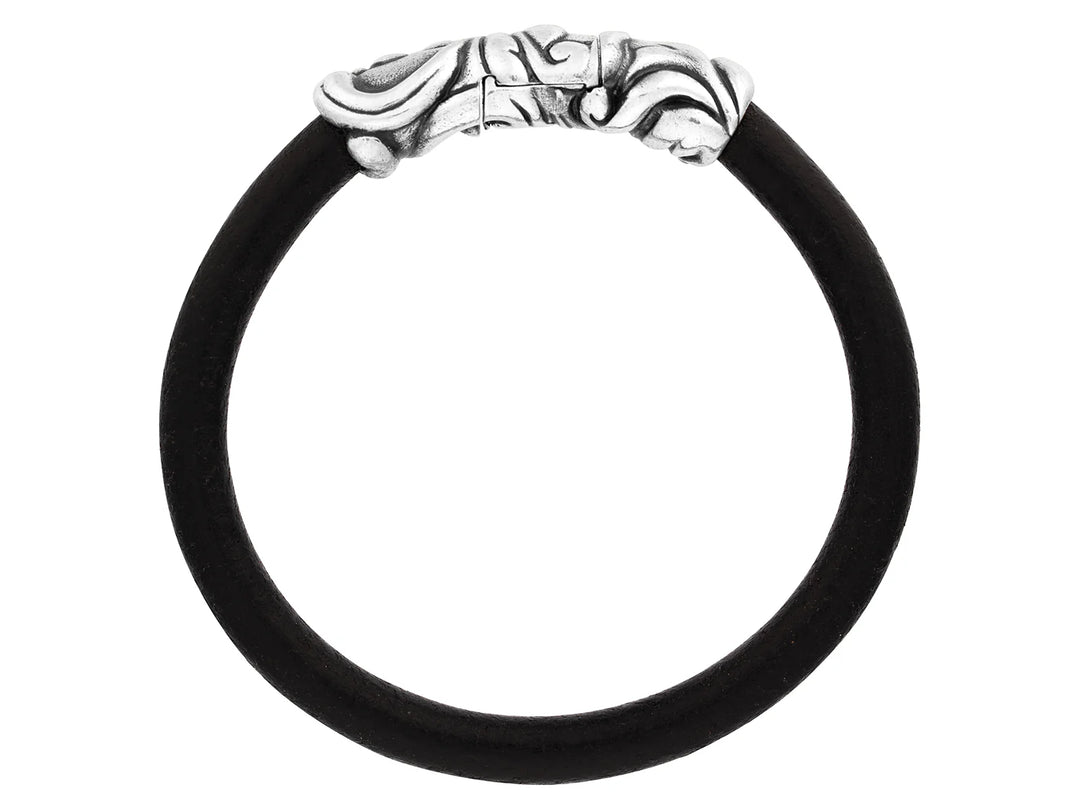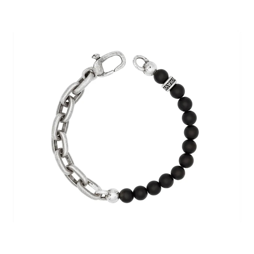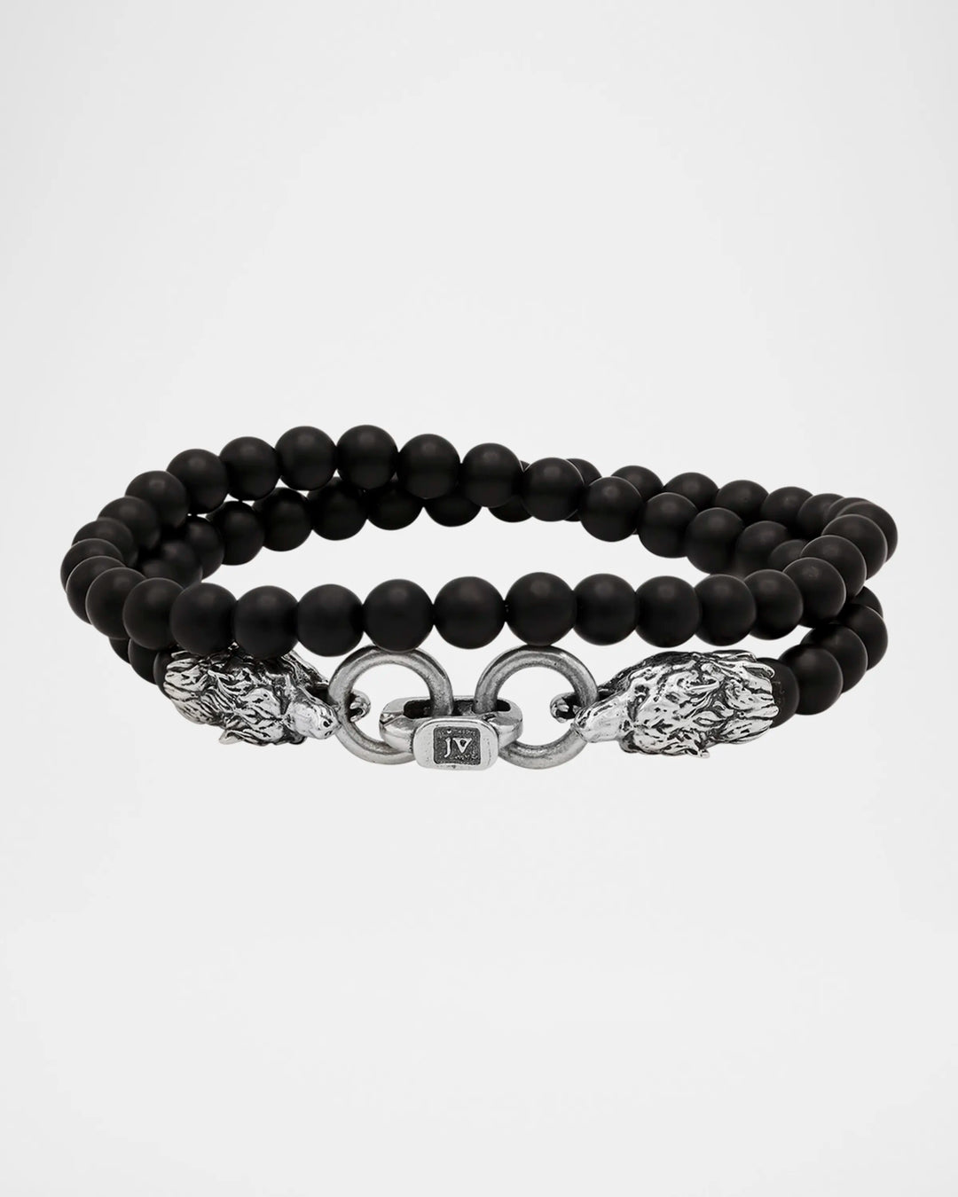 Men's Wolf-Clasp Sterling Silver and Black Onyx Beaded Bracelet