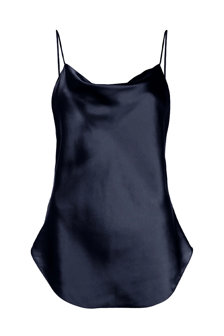 Our opulent Marta Cami, expertly designed with the finest silk, is just the touch to enhance any ensemble. Features a weighted cowl neckline for the perfect drape. Effortlessly layer it beneath any jacket or pair it with monochromatic trousers for a look of sophistication that endures all day.