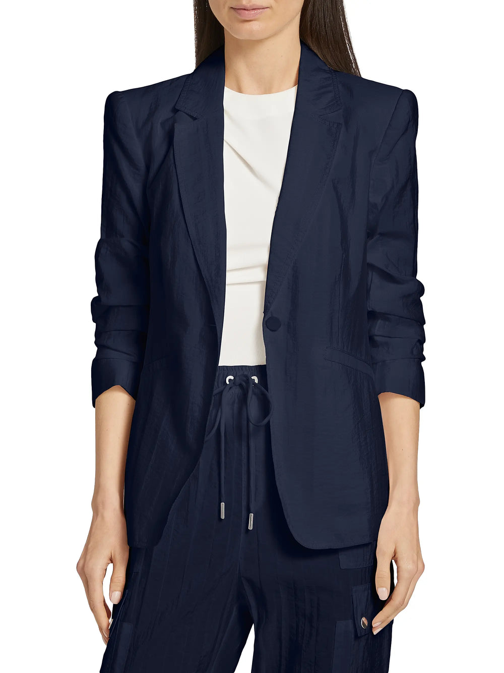Look polished and professional in this Tumbled Woven Khloe Blazer. This expertly tailored piece features a collared neckline, notched lapels, and stylized sleeves for a look that is modernly classic. The Tumbled Woven material is lightweight and sophisticated. Make a powerful statement with this must-have blazer.
