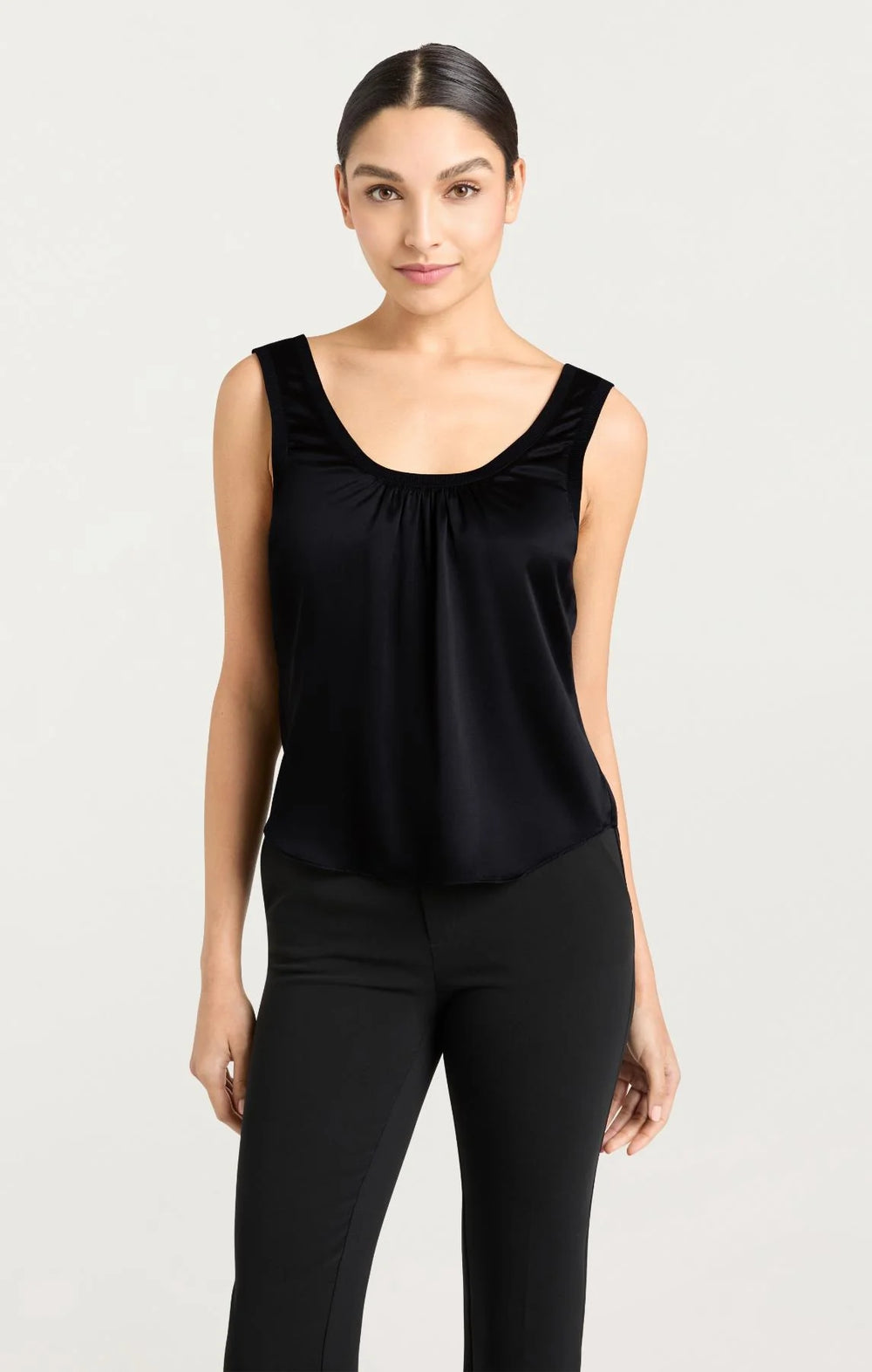 The Lenore Tank features a graceful scoop neck and a flowy silk fabric that drapes effortlessly for a timeless silhouette. Designed for comfort without compromising elegance, this classic piece pairs seamlessly with any outfit.