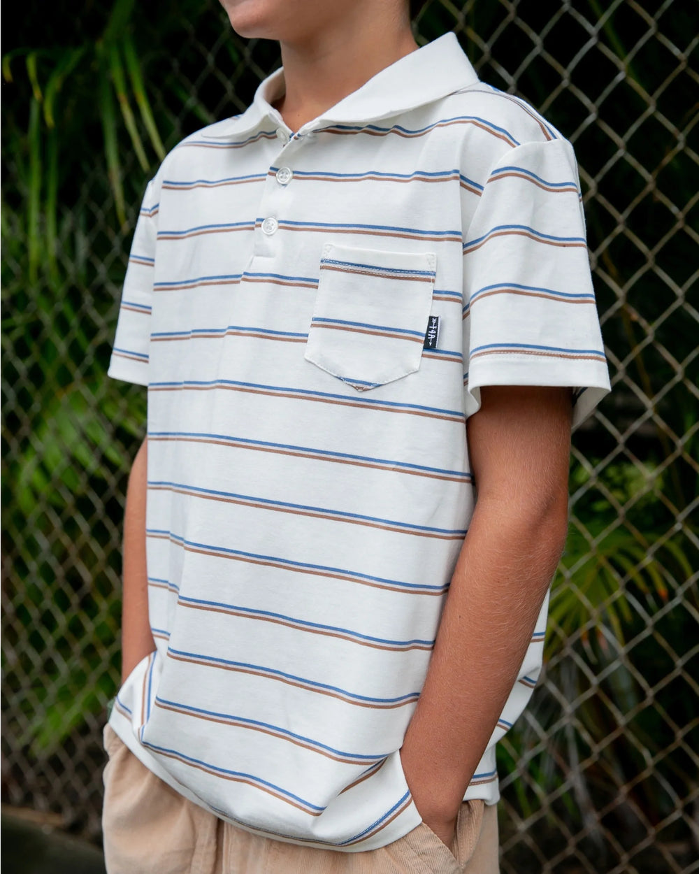 Boy's polo top with chest pocket.