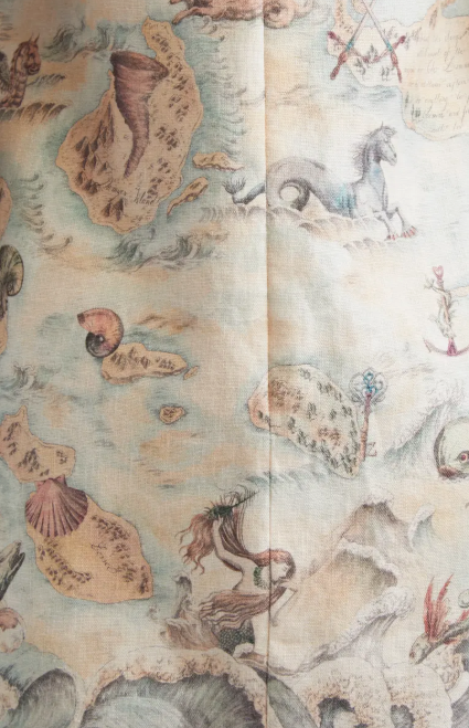 Equal parts romantic and rebellious, this lightweight linen minidress evokes the nautical escapism of the 'Twisted Romance' collection—buoyed by a faded map print and rope trim threaded through gilded grommets.