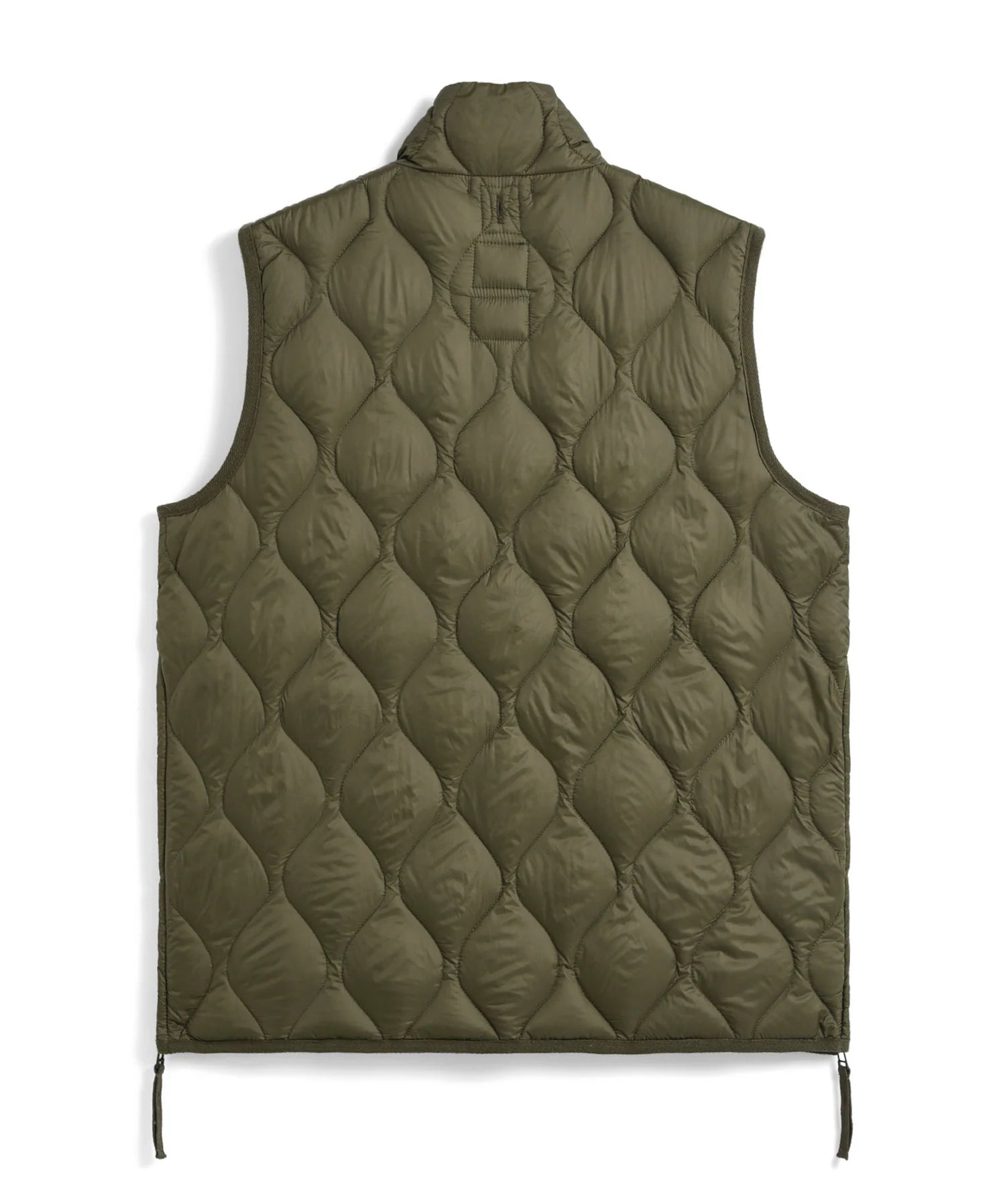 Experience the perfect blend of style and comfort with this military-inspired down vest, crafted to keep you warm all the way to your neck. Made with a light and incredibly soft fabric, it's filled with premium 800-fill power down for exceptional heat retention. A signature feature of the MILITARY LINE, the side slits enhance mobility, making layering even more enjoyable. We recommend pairing it with other items from our MILITARY LINE series, such as our down pants and down mufflers, for a complete look. The product is designed unisex sizing.  Hand washable at home.