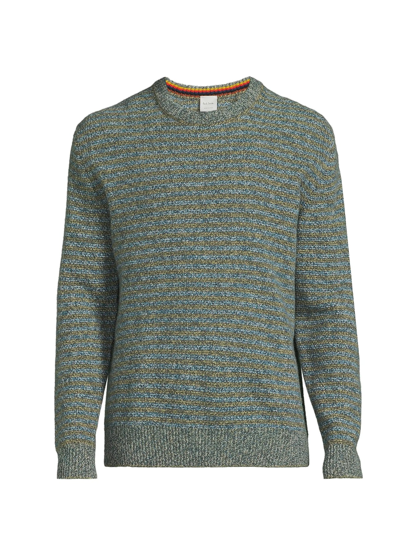 From the Tribute to Photography Collection. This crewneck sweater from Paul Smith is crafted of luxurious lambswool and detailed with rib-knit trim for added structure and comfort.