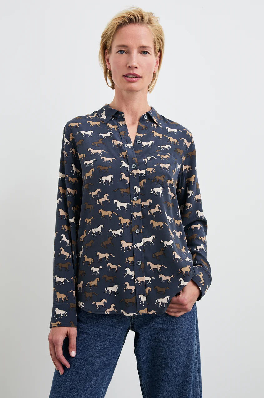 Find your wild side with the Kate, a polished yet playful addition to any outfit. Featuring traditional shirting details and a unique print bound, call on this ultra-soft, washed silk button-down to complete a statement-making ensemble.