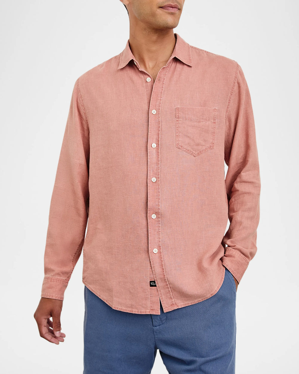 The Mykonos Shirt will take you from day to night with its breathable linen fabrication. The staple shirt features a relaxed collar, long sleeves, and a single patch pocket at chest.