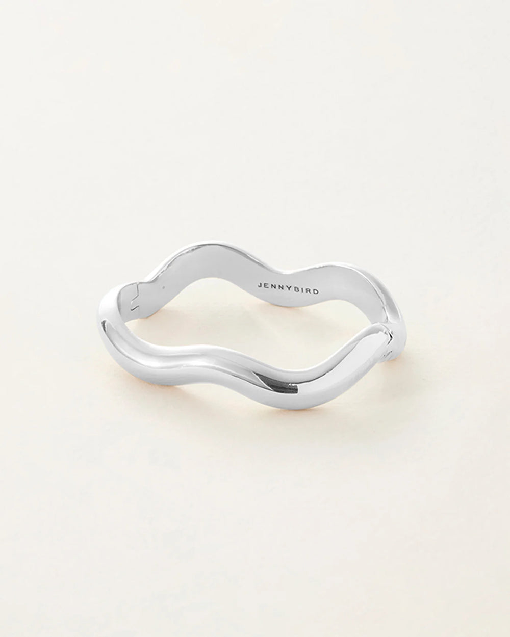 A bold, curvy bangle that makes a major statement. For double the curves, stack with another Ola Bangle, or mix in a silver version for a two-tone effect. This high polish bangle opens and closes with a hinge and tab lock closure.