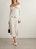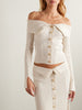 Zimmermann's off-the-shoulder cardigan is part of a set with the matching skirt. It's ribbed-knitted for a close fit and has coordinating cotton trims. Accessorize with a delicate pendant.