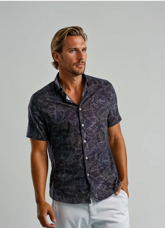 Unleash your wild side with the NOVA Jungle Monstera Shirt. This short-sleeve, standard-collar shirt combines modern sophistication with a nature-inspired edge, perfect for summer evenings and laid-back gatherings.