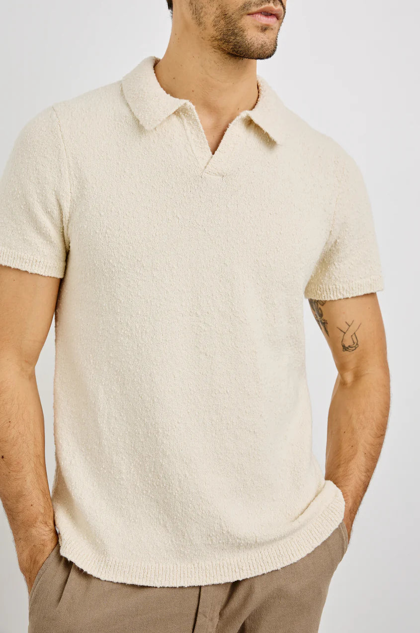 A short-sleeve knit with an effortless, wear-anywhere fit. The Heath features nostalgic design details like a johnny collar—polo style, no buttons—crafted from lightweight, textured cotton yarn.